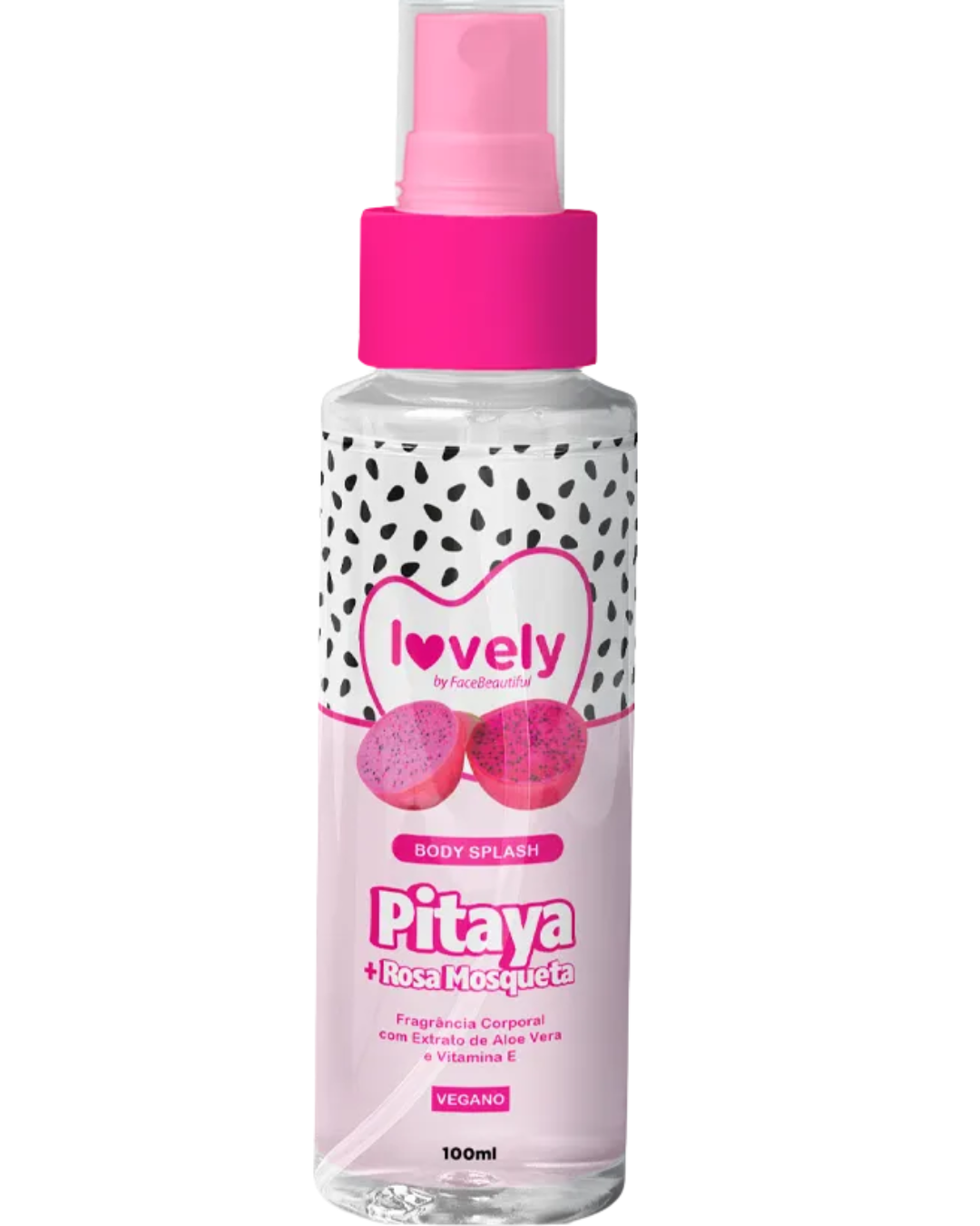 Deixe-se envolver pelo Body Splash Pitaya Vegano Lovely! Com uma fragrância única e irresistível da pitaya, este spray corporal de 200ml é ideal para quem busca hidratação, frescor e um aroma exótico no dia a dia.