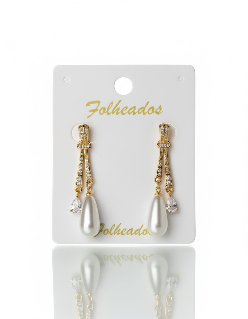 O Brinco Pendente com Pérola Gota é a joia que une o clássico atemporal (pérola) com o brilho moderno (zircônias). Com um design sofisticado e delicado, ele apresenta uma base superior cravejada que desce em duas hastes finas, terminando em uma pérola em formato de gota e um ponto de luz de zircônia. Esta peça é perfeita para conferir um toque de luxo e glamour a trajes de festa, sendo a escolha ideal para noivas, madrinhas ou convidadas.