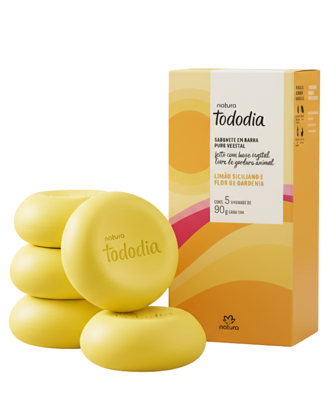 O Sabonete em Barra Puro Vegetal Tododia Limão Siciliano e Flor de Gardênia da Natura é uma fragrância de edição limitada que traduz o frescor da brisa da manhã de verão em um banho revigorante.