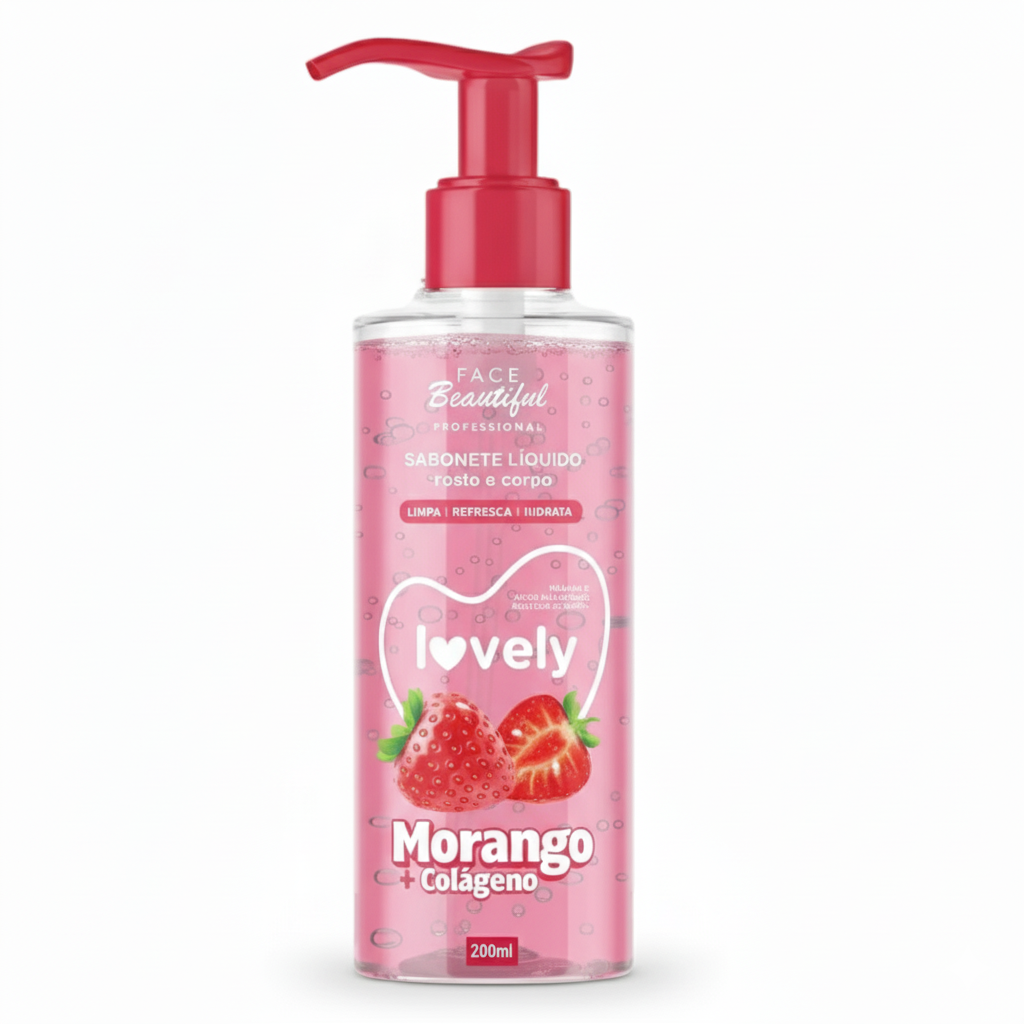 SABONETE LÍQUIDO MORANGO ROSTO E CORPO LOVELY 200ML - FACE BEAUTIFUL